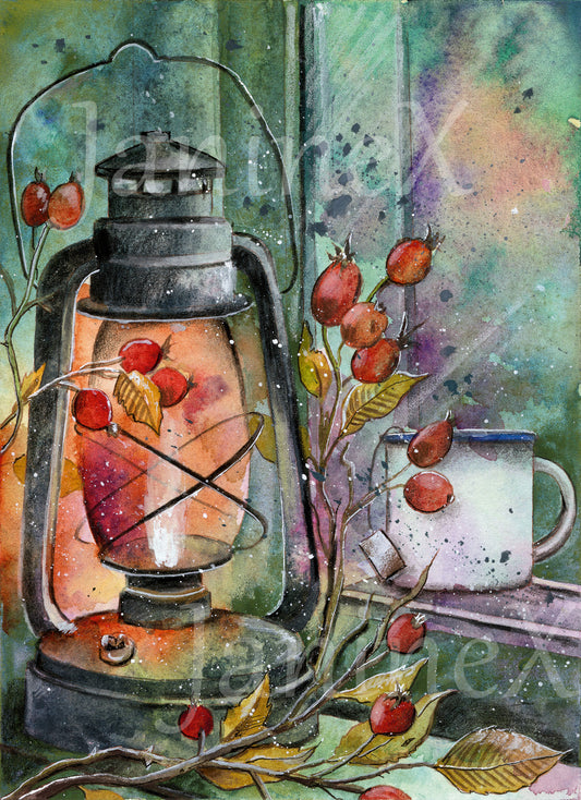 Diamond Painting Leinwand RUND ohne Steine - Harena`s Artwork "Hagebutten"