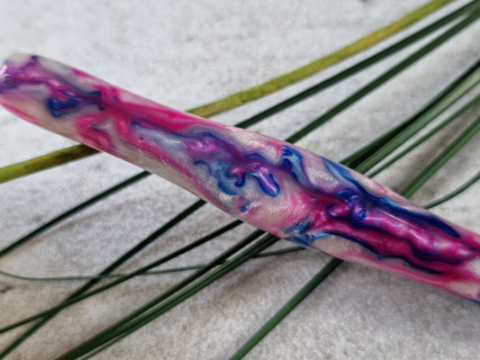 ergonomischer Diamond Painting Stift in Acryl - weiss/creme mit grün/lila Marmoreffekt