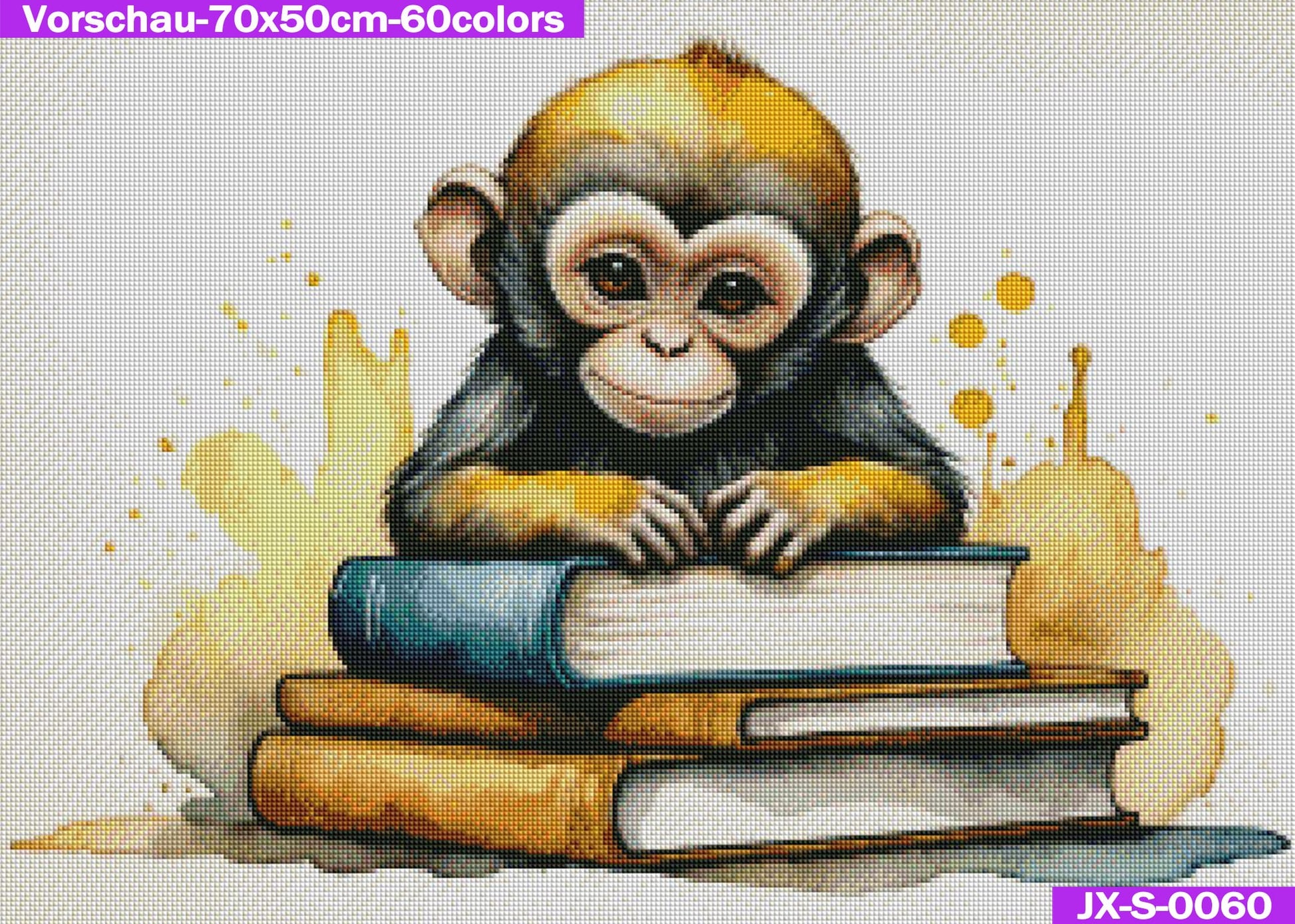 Vorbestellung - Diamond Painting Bild JX-0060 - lizenziert "Bücher Äffchen" wähle deine Variante