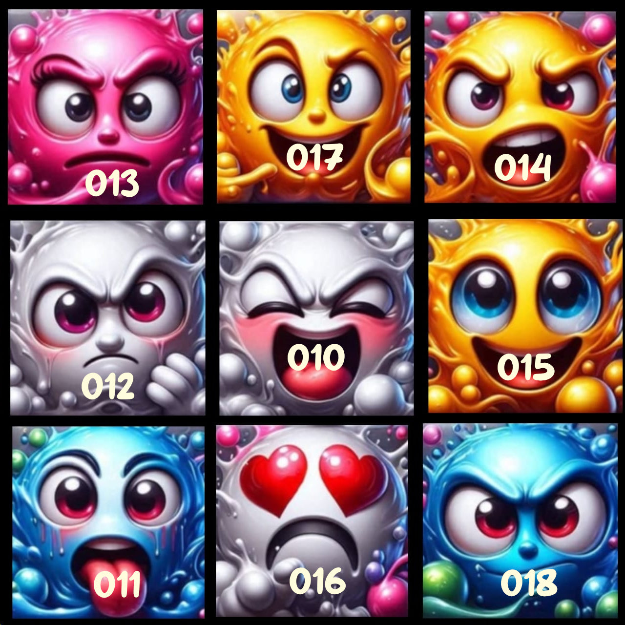 Diamond Painting Bild JXA-010 bis JXA-018 - 9 Motive für Crazy Faces