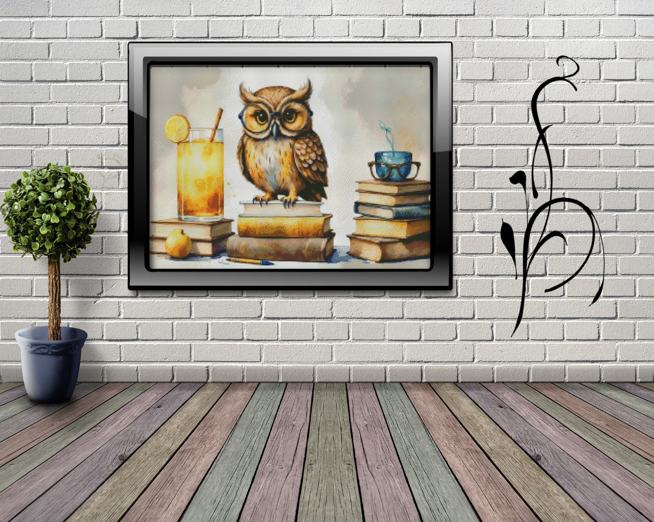 Diamond Painting Bild MIT runden Steine - lizenziert "Bücher Eule"