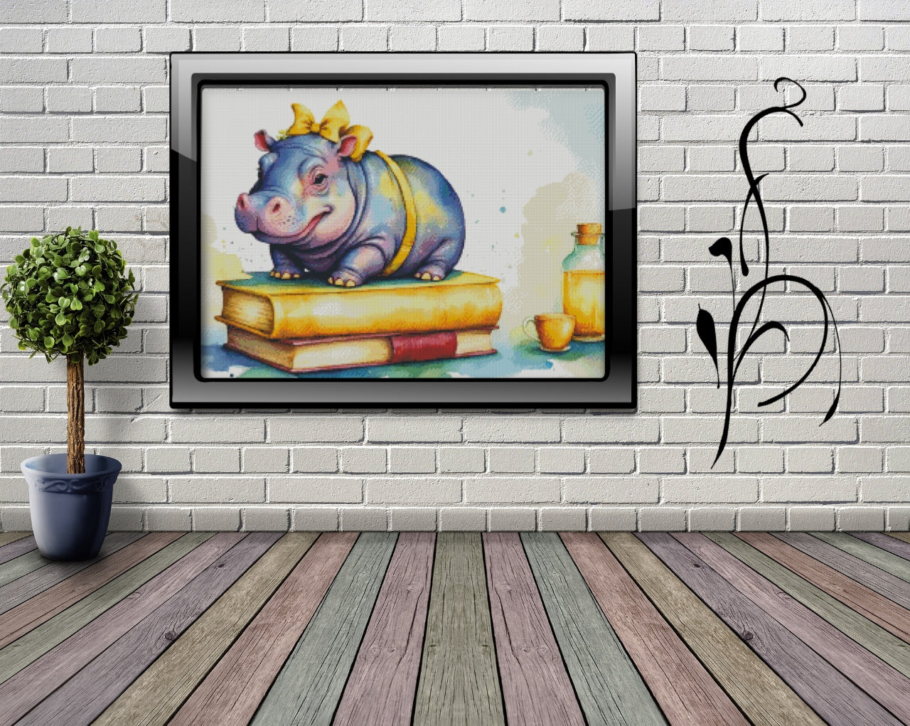 Diamond Painting Bild MIT runden Steine - lizenziert "Bücher Nilpferd"