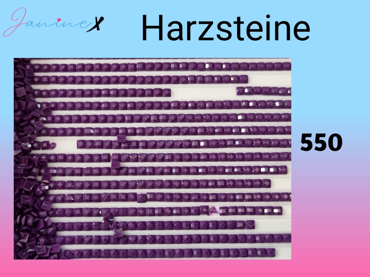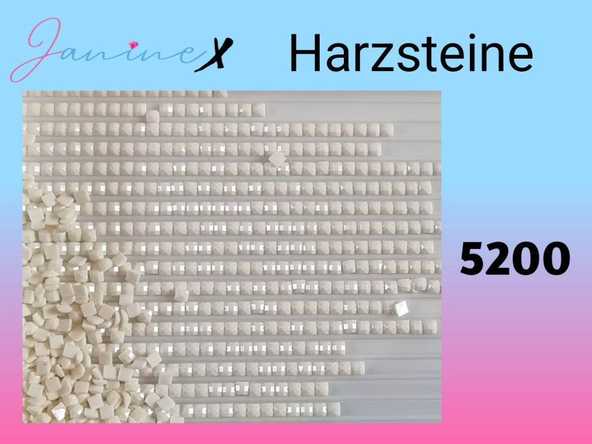 Hier bekommst du Diamond Painting Steine in eckig (square), die aus HARZ (Resin) hergestellt sind und somit eine sehr gute Qualität haben.
