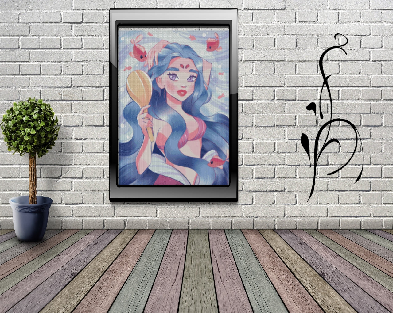 Diamond Painting Leinwand ECKIG ohne Steine - Katto´s Artwork "Meerjungfrau mit Spiegel"