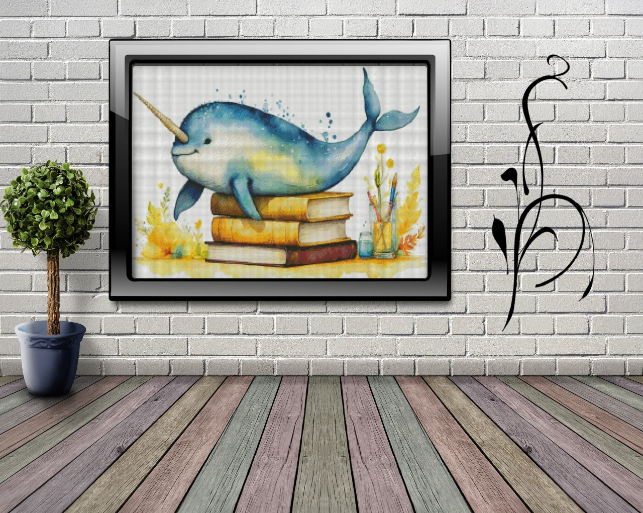 Diamond Painting Leinwand ECKIG ohne Steine - lizenziert "Bücher Narwhal"