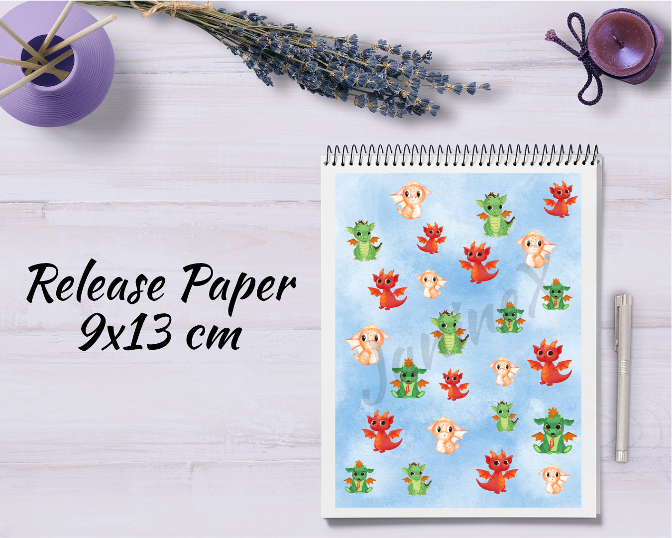 Das Trennpapier hat eine mit Silikon beschichtete Seite, die auf dem Flüssigkleber oder doppelseitigen Klebefolie haften bleibt und wieder ablösbar ist und eine bedruckte Seite, die beschreibbar ist bzw. auf der auch Sticker halten . Die Release Paper sind mehr als einmal verwendbar.