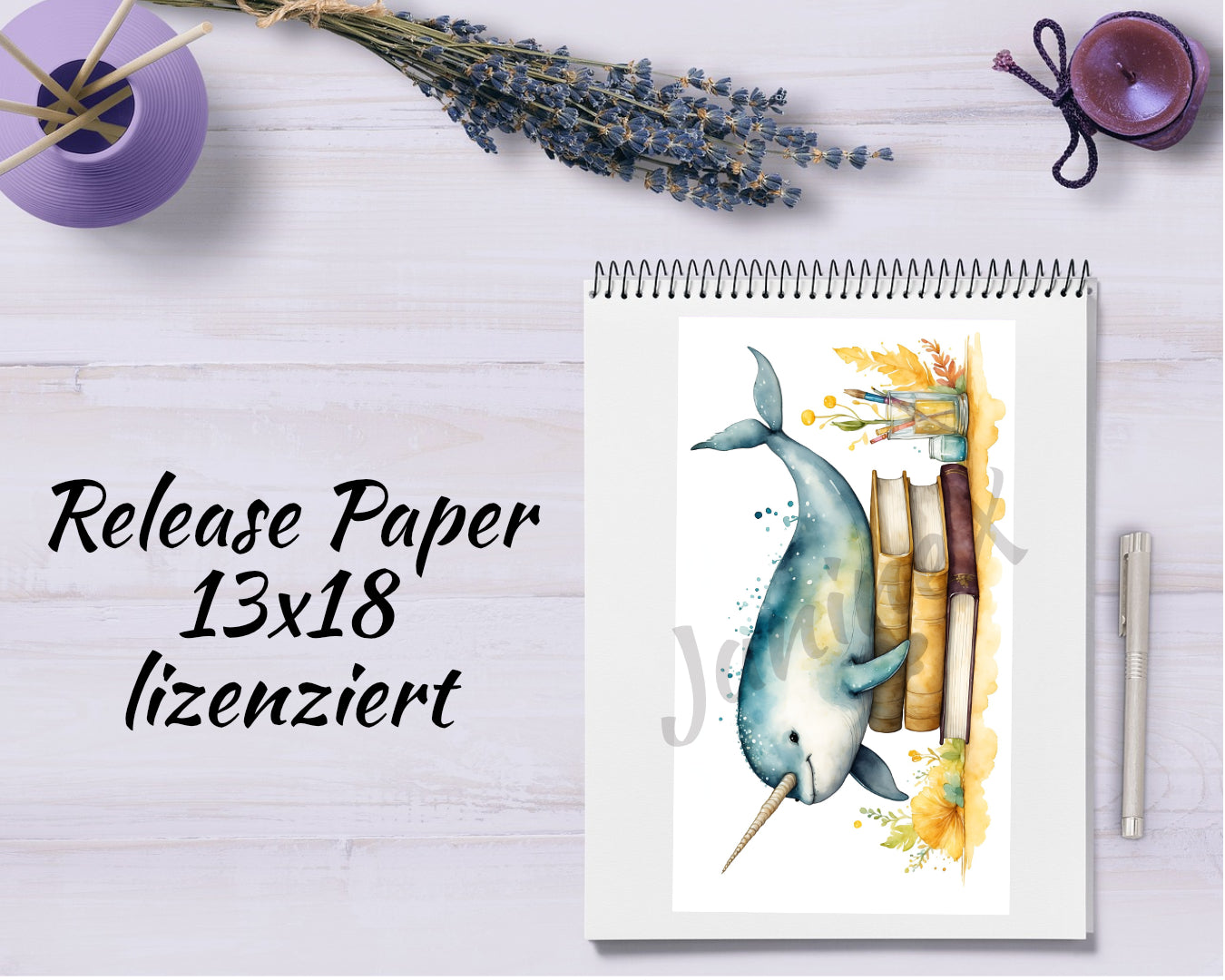 Diamond Painting Motiv Release Paper "Bücher Narwhal" 4 Stück in 13x18 cm