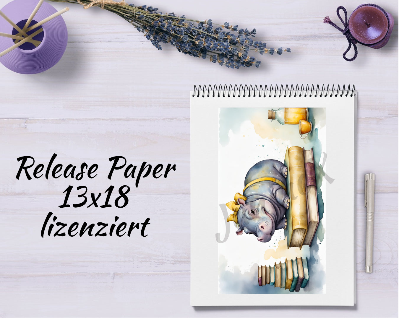 Diamond Painting Motiv Release Paper "Bücher Nilpferd" 4 Stück in 13x18 cm