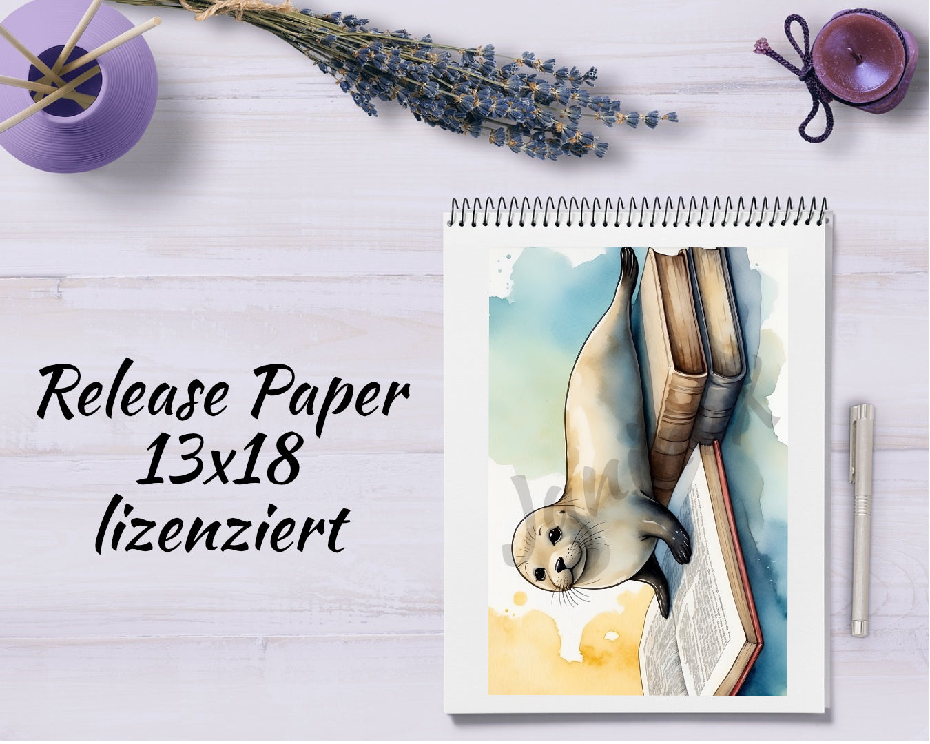 Diamond Painting Motiv Release Paper "Bücher Robbe" 4 Stück in 13x18 cm