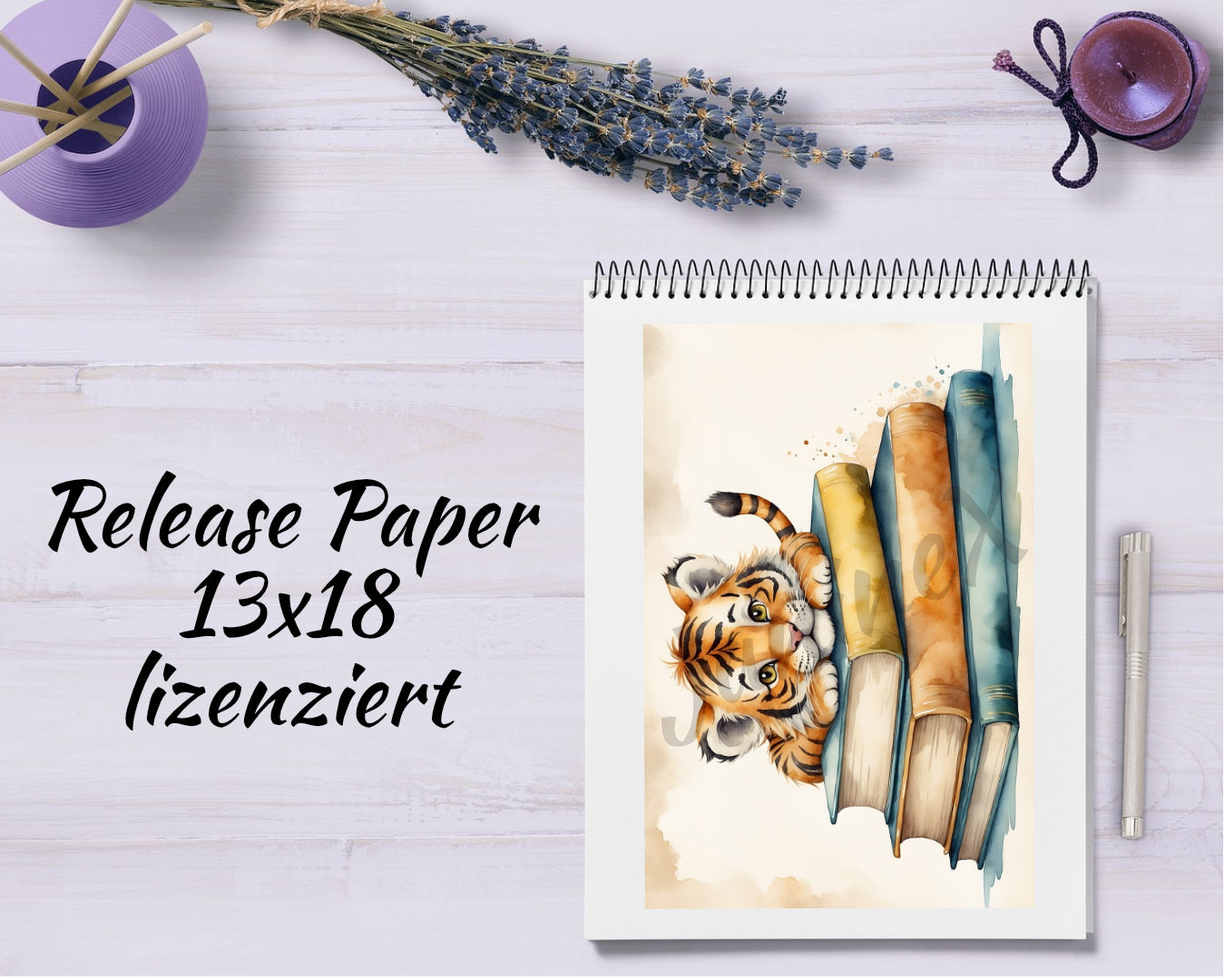 Diamond Painting Motiv Release Paper "Bücher Tiger" 4 Stück in 13x18 cm