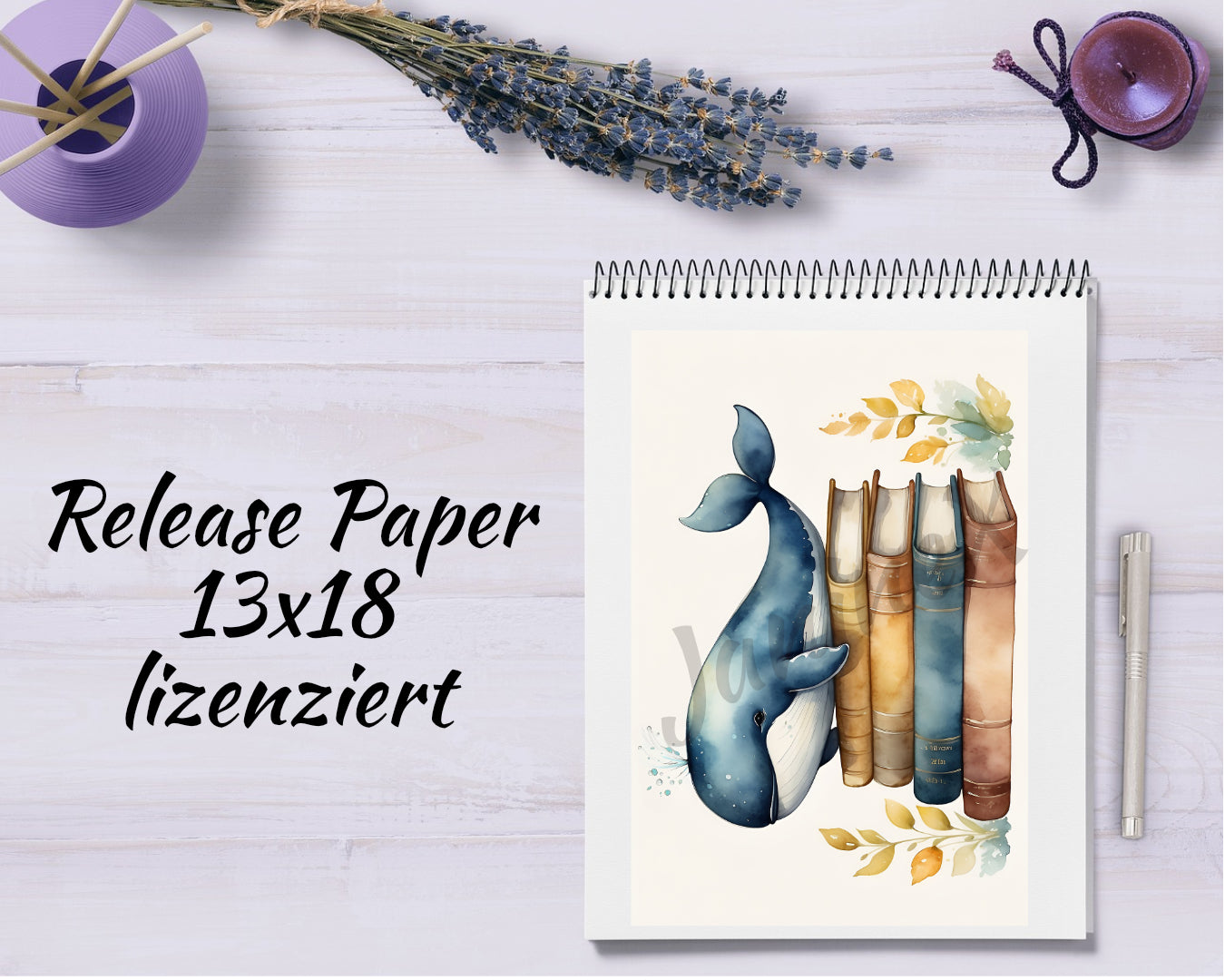 Diamond Painting Motiv Release Paper "Bücher Wal" 4 Stück in 13x18 cm