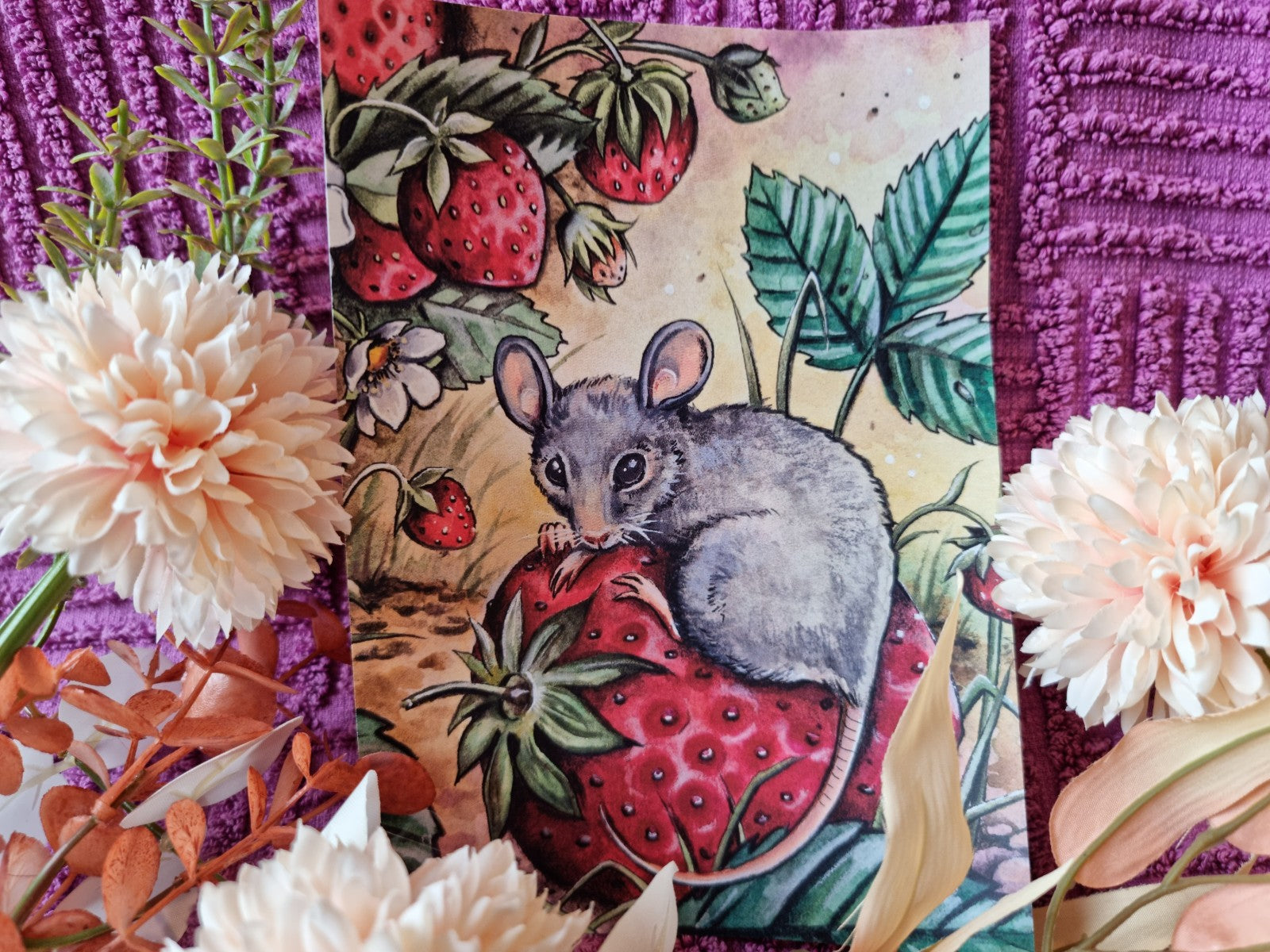 Diamond Painting Motiv Release Paper Harena`s Artwork "Erdbeermäuschen" 4 Stück in 13x18 cm