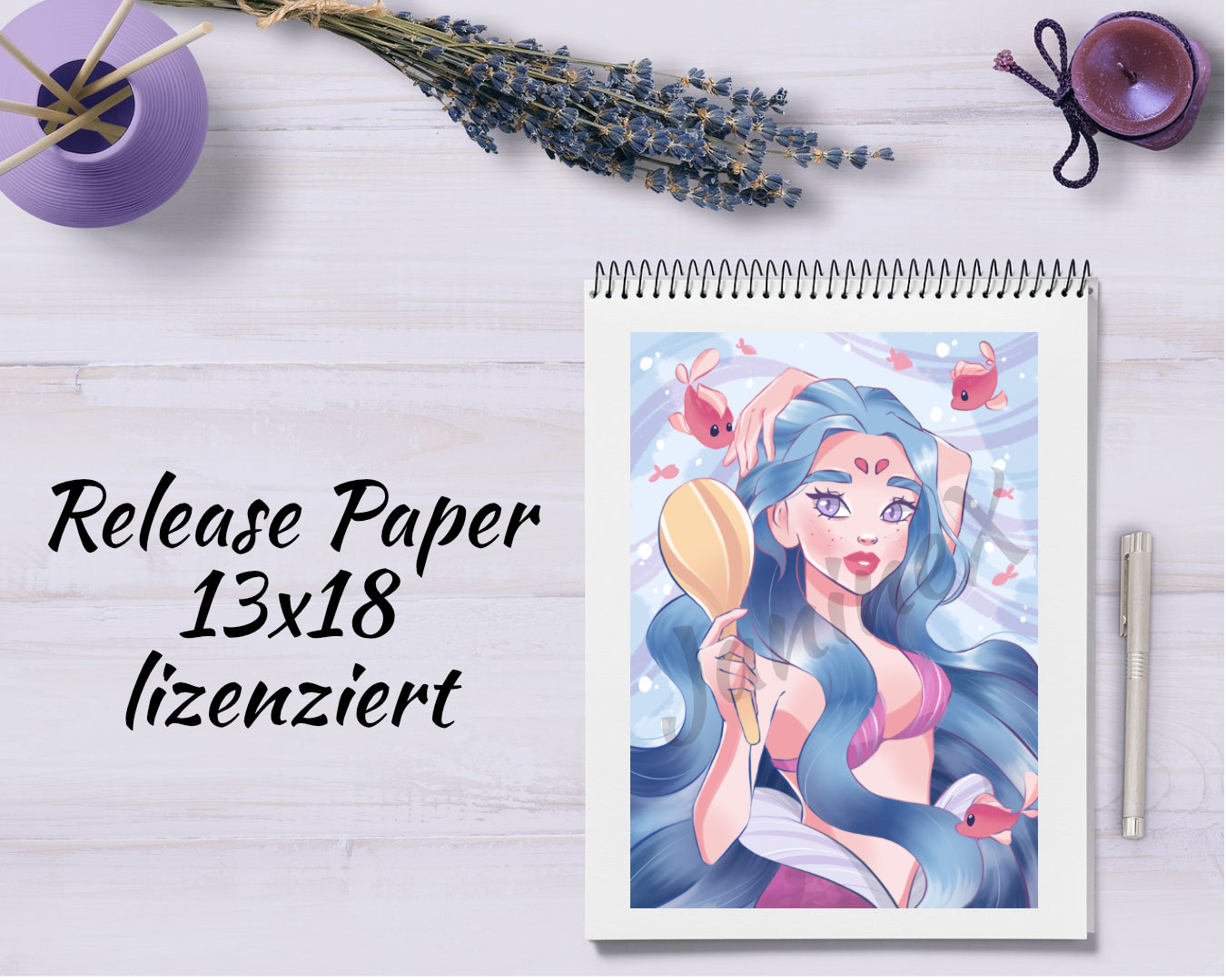 Diamond Painting Motiv Release Paper Katto`s Artwork "Meerjungfrau mit Spiegel" 4 Stück in 13x18 cm