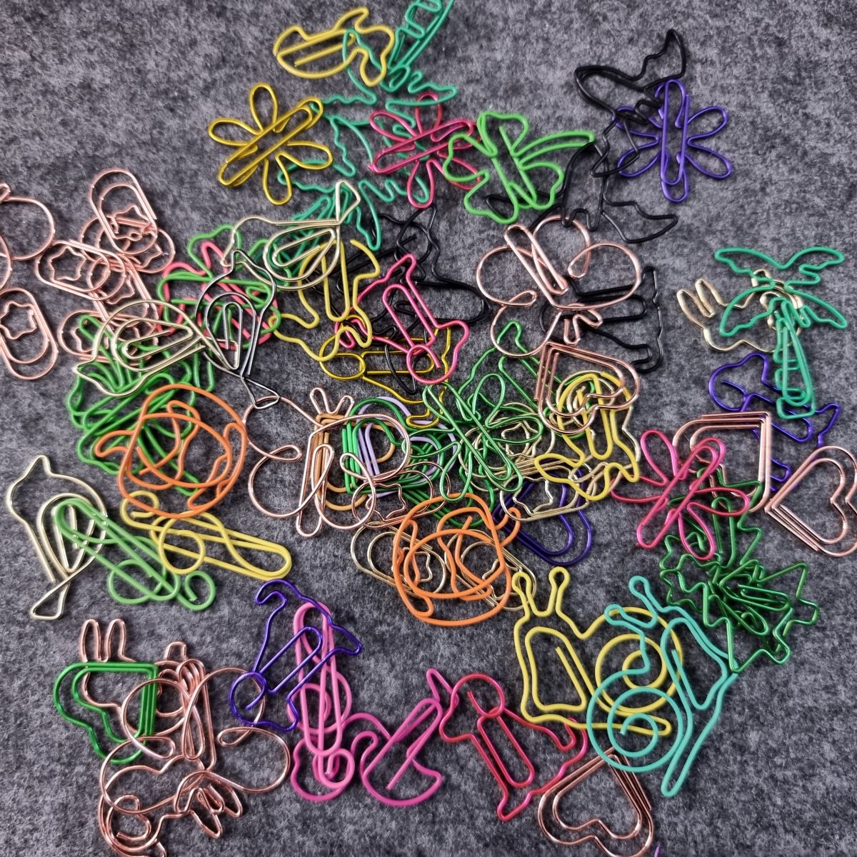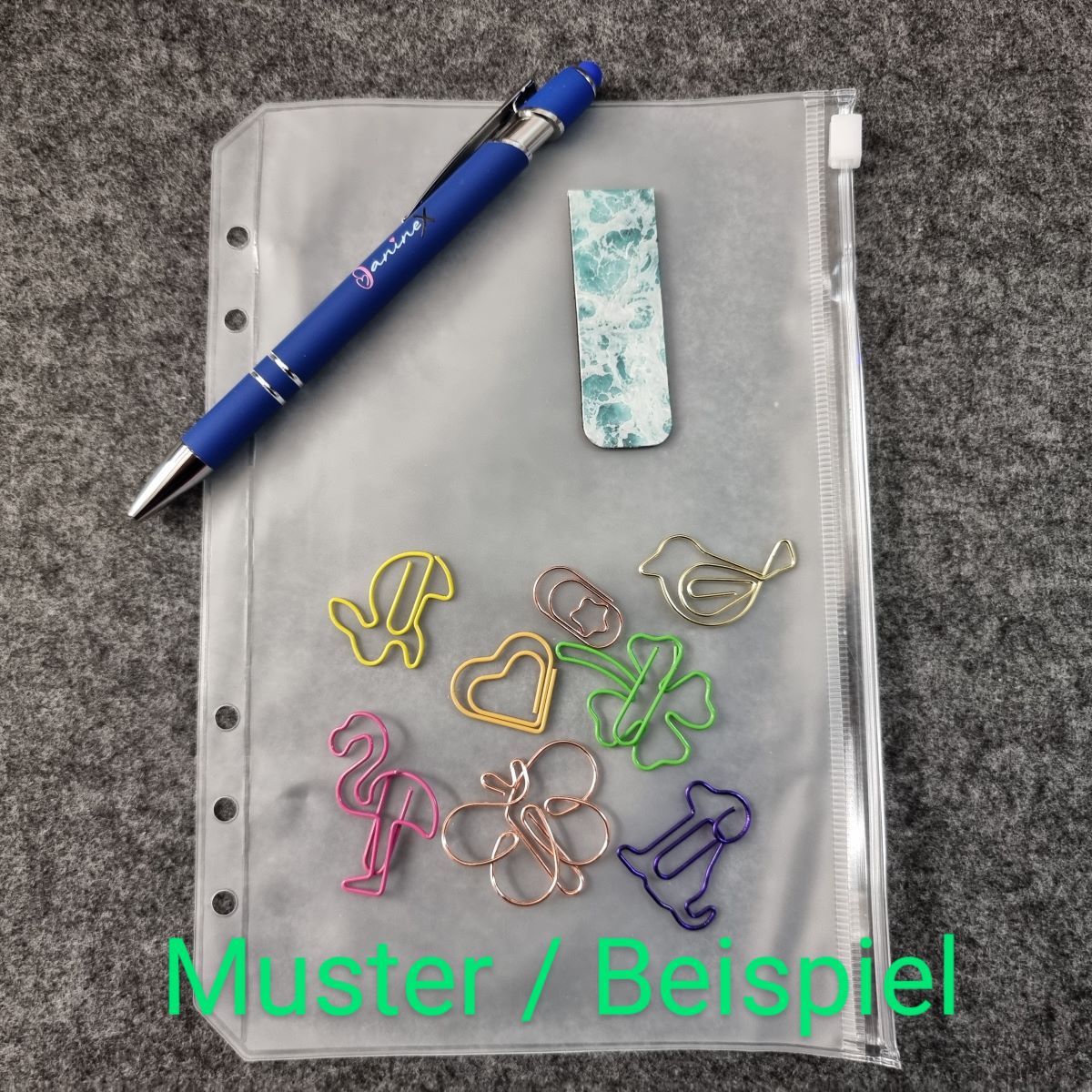 Die Büroklammern und auch das Lesezeichen können im Motiv und in der Farbe je Motiv wechseln.