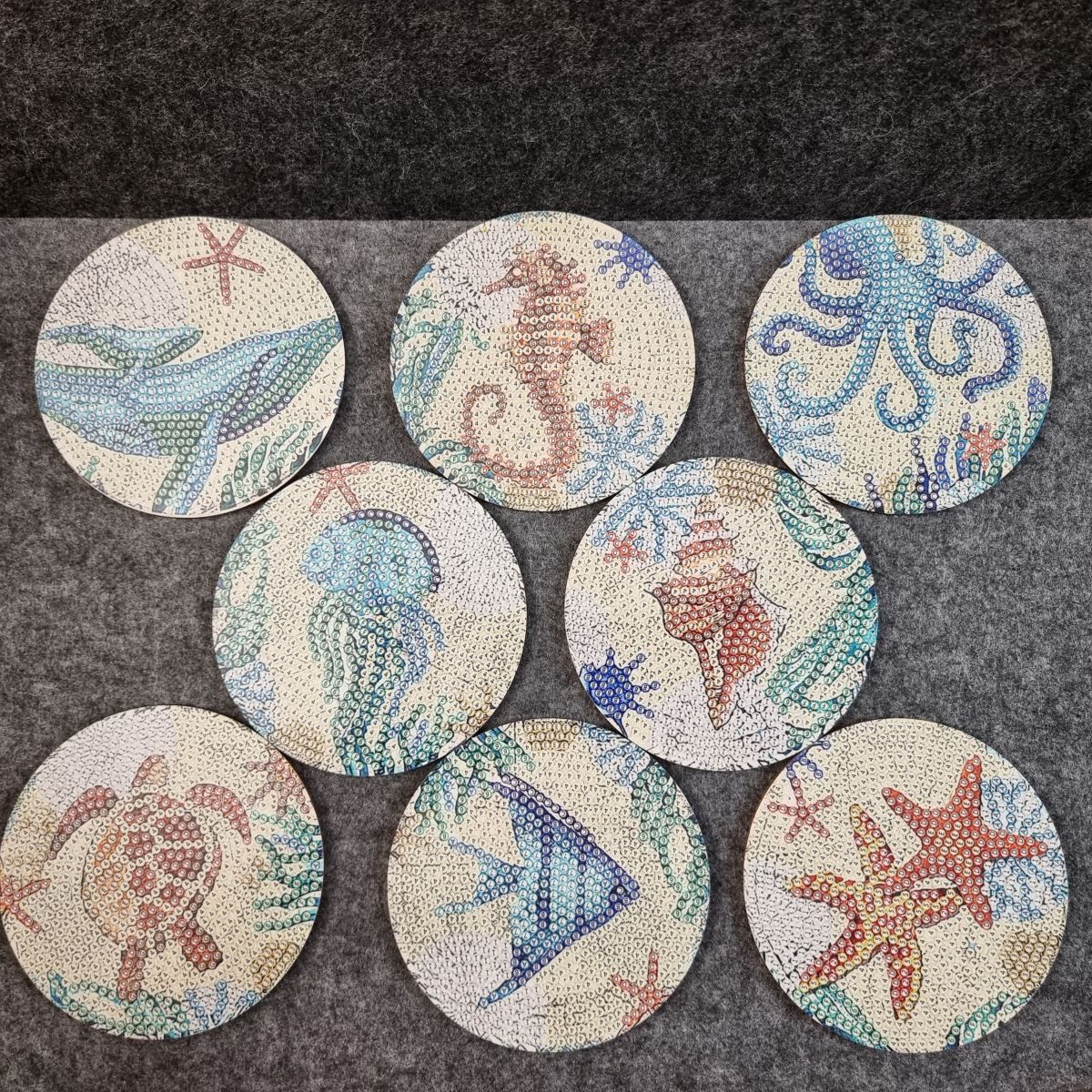 Diamond Painting Untersetzer #02 aus Holz mit Meermotiv und Strass Steine