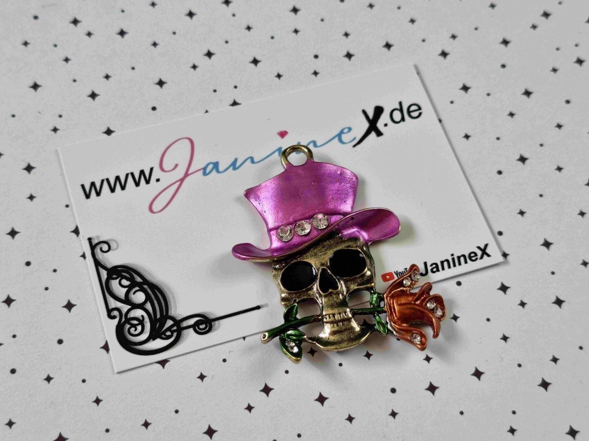 Folienmagnet Deluxe #102 - Totenkopf pinkem Hut und Rose