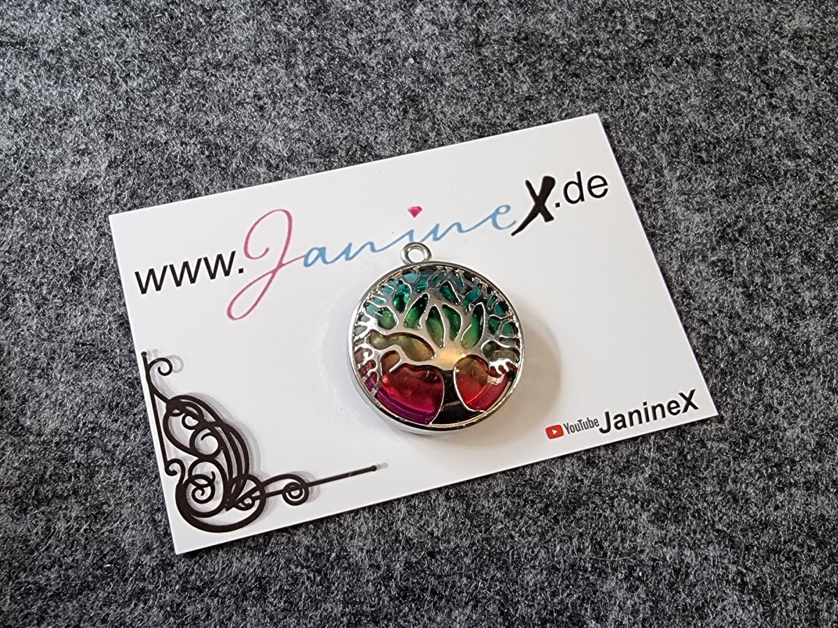 Magnet besteht aus Metall und Glas und das Grössenverhältnis zur Visitenkarte könnt ihr auf dem Foto sehen.
