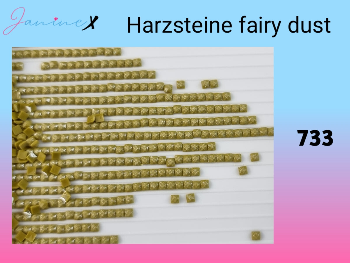 Verkauft werden Diamond Painting Harz FairyDust (Schimmersteine) Steine in eckig (square).