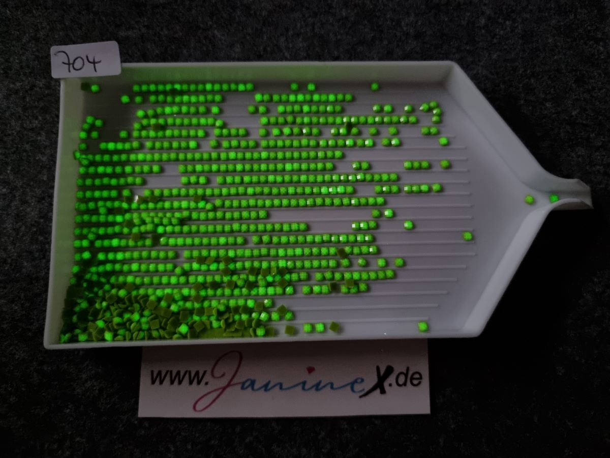 Verkauft werden Diamond Painting nachtleuchtende (dark glow) Steine in eckig (square).