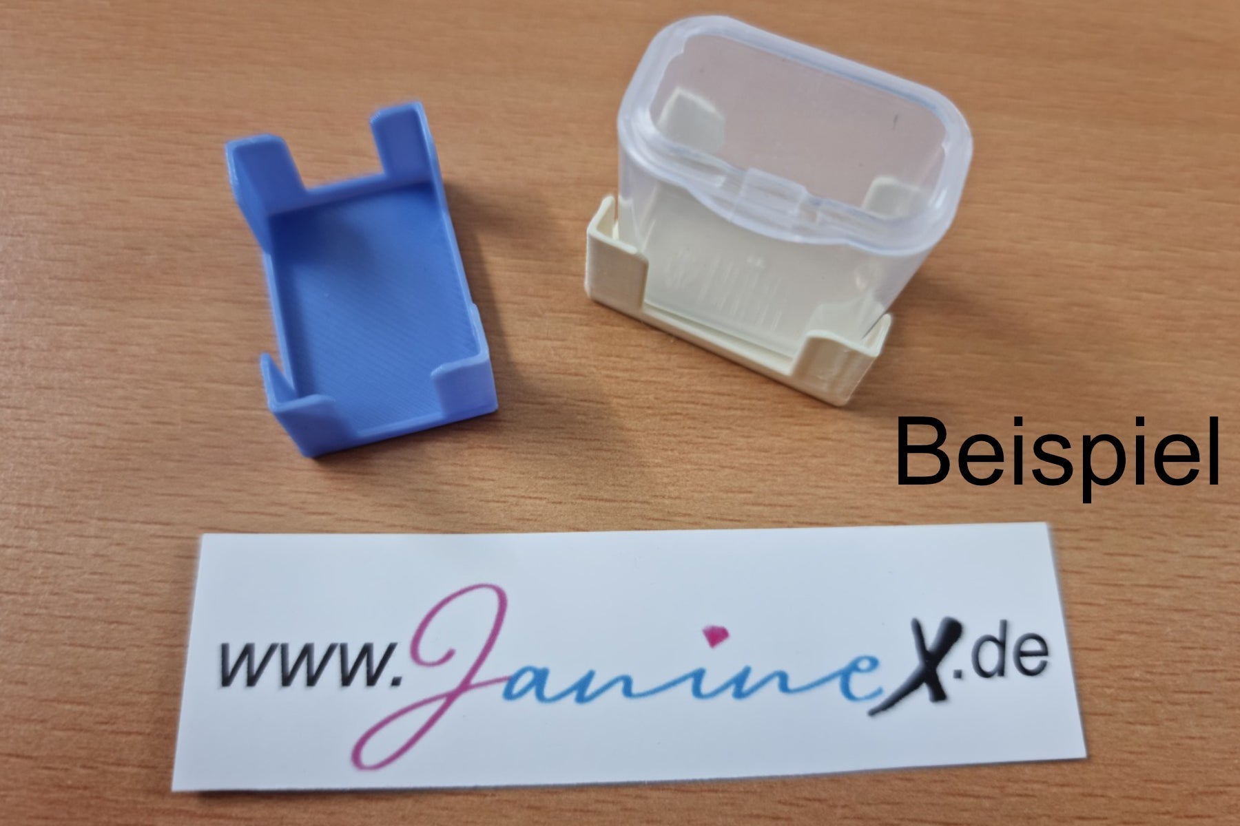 Da die kleinen Döschens in geöffnetem Zustand umfallen können, gibt es als Zugabe zu jeder 60er Slot Box eine kleine Halterung (Farbe kann variieren) dazu. Das verhindert das umfallen der Döschen und kann auch in der Box verstaut werden. Es ist sogar möglich die kleinen Halterungen auch in der ganzen Box im Schachbrettmuster unter die Döschen zu stellen.