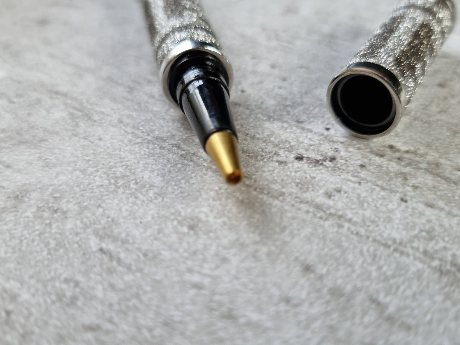 Das Gewicht des Stiftes liegt bei etwa 7,5 Gramm ohne Kappe und bei 10 Gramm mit Kappe