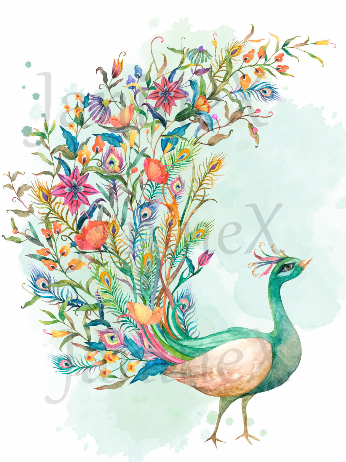 Diamond Painting Leinwand ECKIG ohne Steine - lizenziert "Pfau"