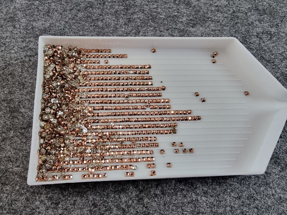 Verkauft werden Diamond Painting metallic Steine in gold eckig (square).