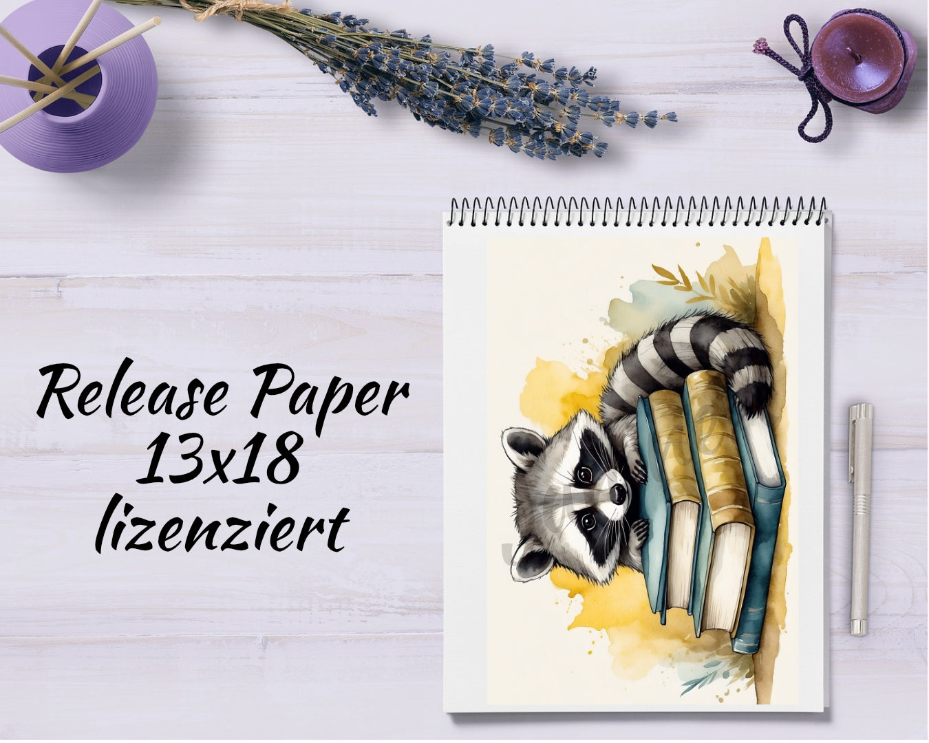 Diamond Painting Motiv Release Paper "Bücher Waschbär" 4 Stück in 13x18 cm