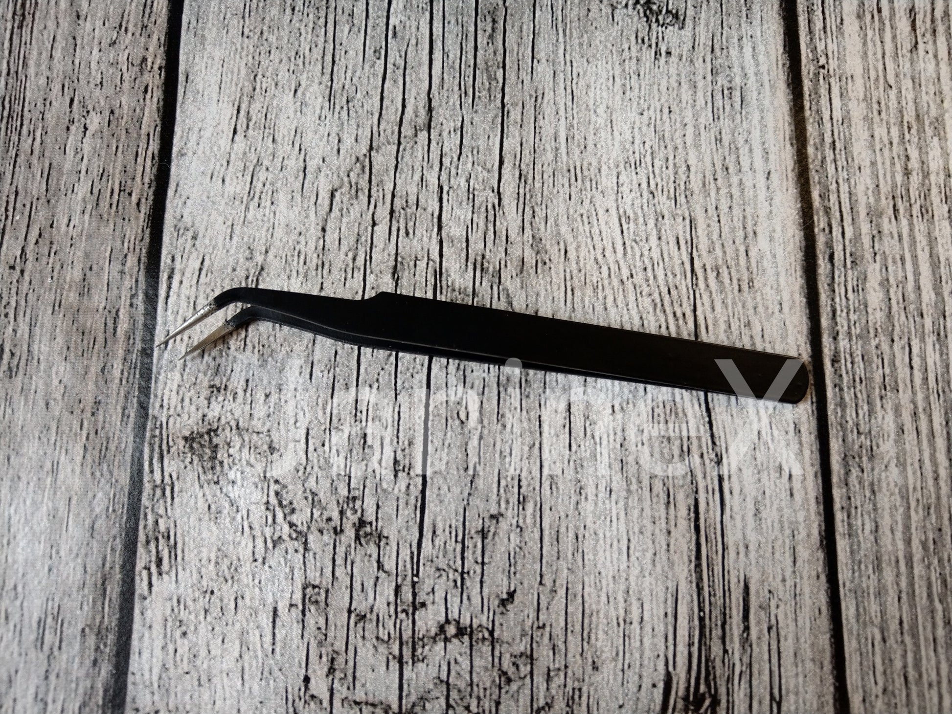 Anti-Statische Edelstahl Pinzette in schwarz mit gebogener spitzen Spitze