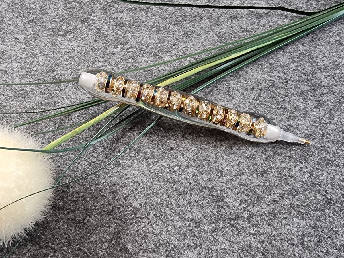 ergonomischer Diamond Painting Stift - silbergold Kugeln & bunte Ringe