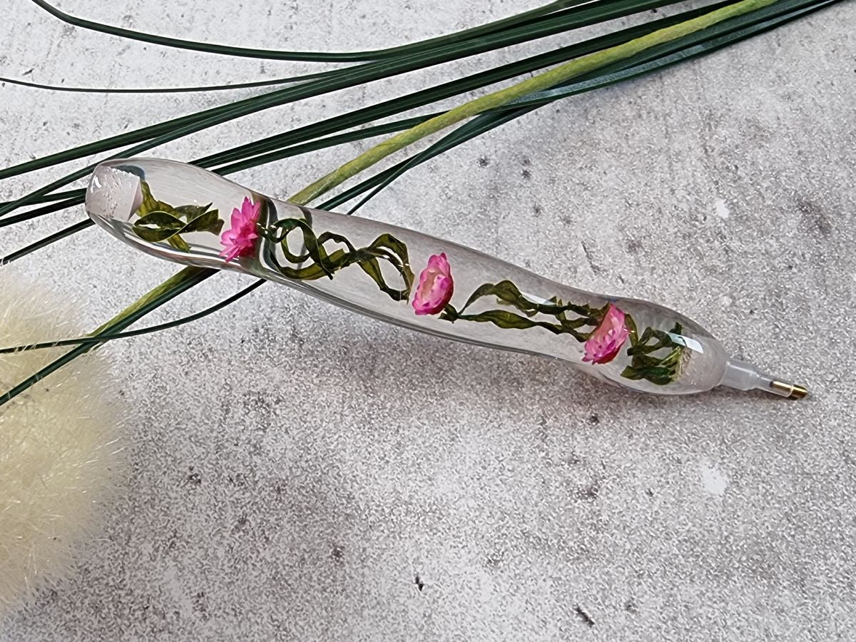 ergonomischer Diamond Painting Stift mit Blumen pink/grün