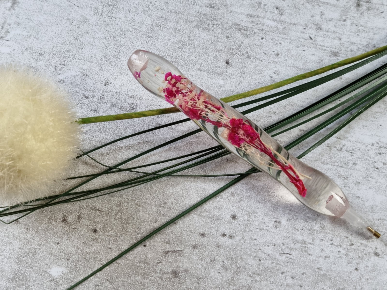 ergonomischer Diamond Painting Stift mit Blumen in pink/weiss