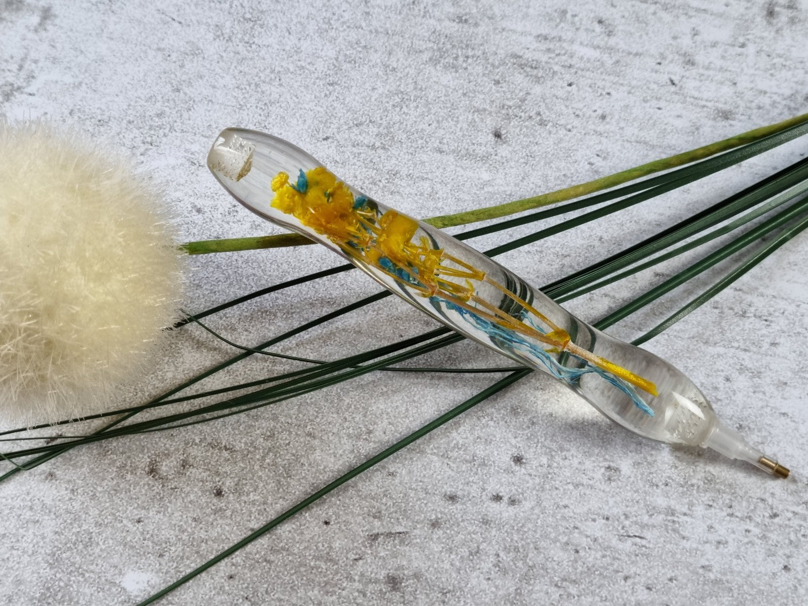 ergonomischer Diamond Painting Stift mit Blumen in blau/gelb