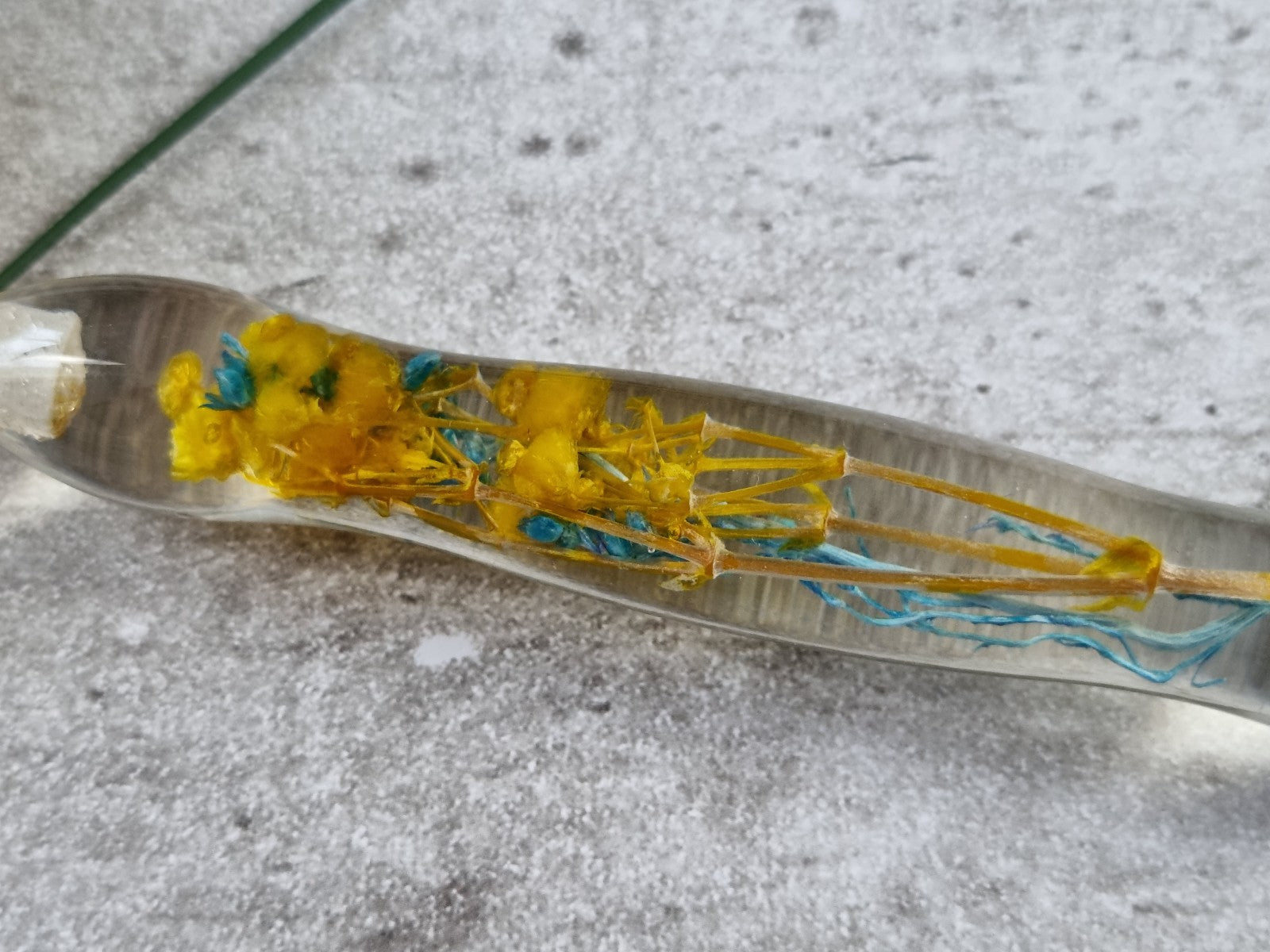 ergonomischer Diamond Painting Stift mit Blumen blau/gelb