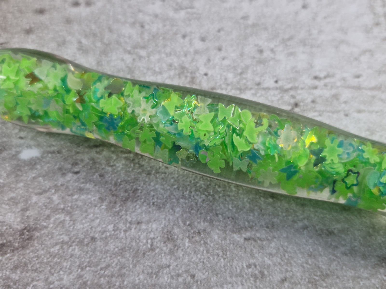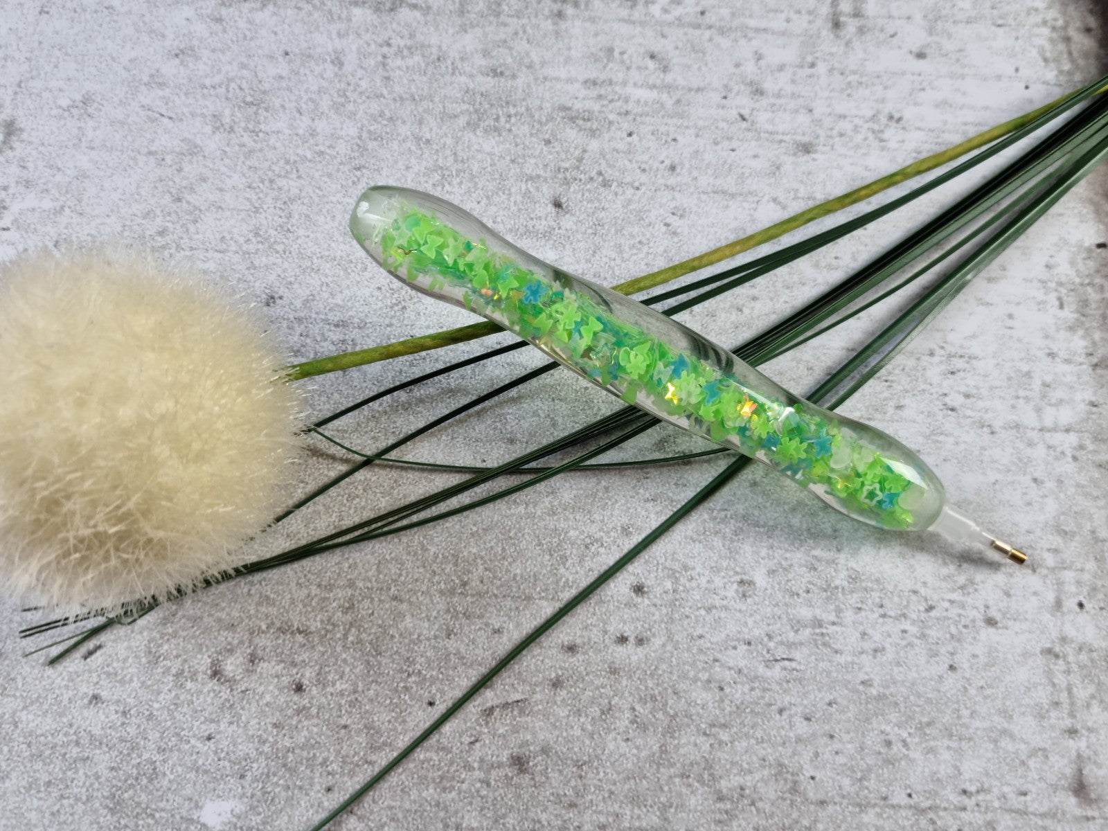 ergonomischer Diamond Painting Stift mit hellgrün/weißem Innenleben, dass im dunkeln leuchtet