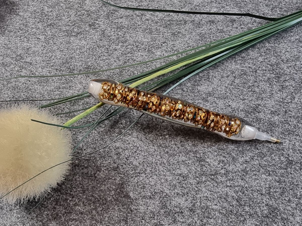 ergonomischer Diamond Painting Stift - kupfergold Kugeln & bunte Ringe
