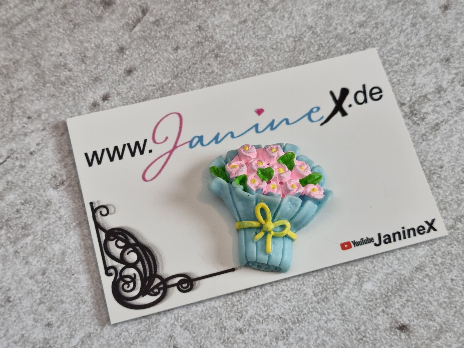 Folienmagnet #076 - Blumenstrauss hellblau mit Rosa Blüten