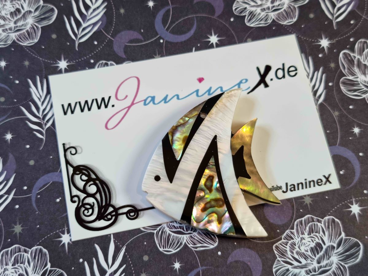 Magnet besteht aus Muschelmaterial und das Grössenverhältnis zur Visitenkarte könnt ihr auf dem Foto sehen.