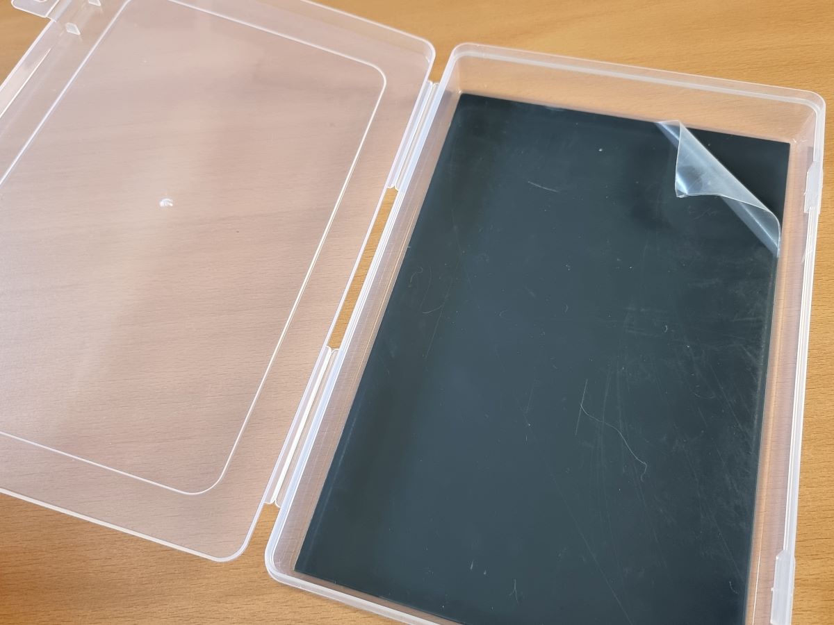 Kunststoff Magnetbox - transparent groß+flach mit dunkelgrauer Platte