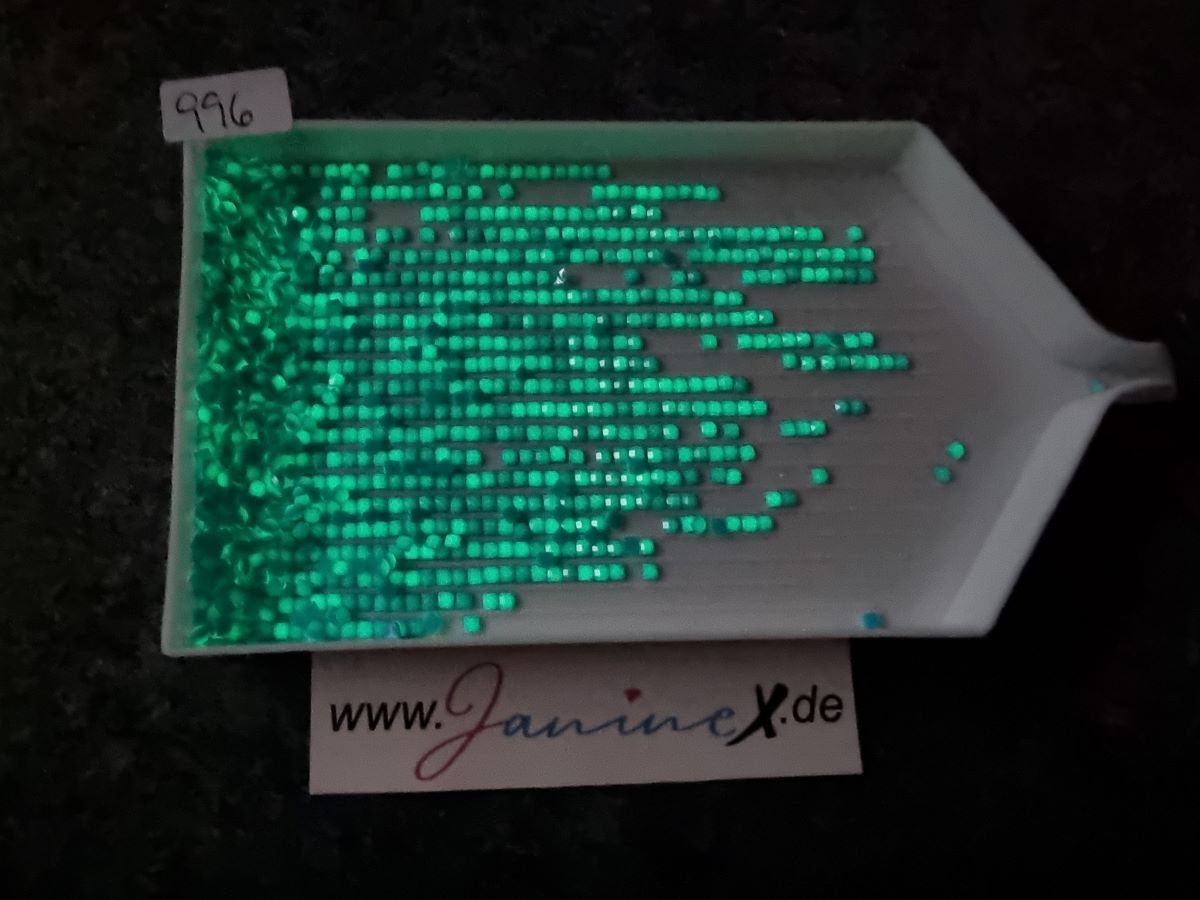 Verkauft werden Diamond Painting nachtleuchtende (dark glow) Steine in eckig (square).