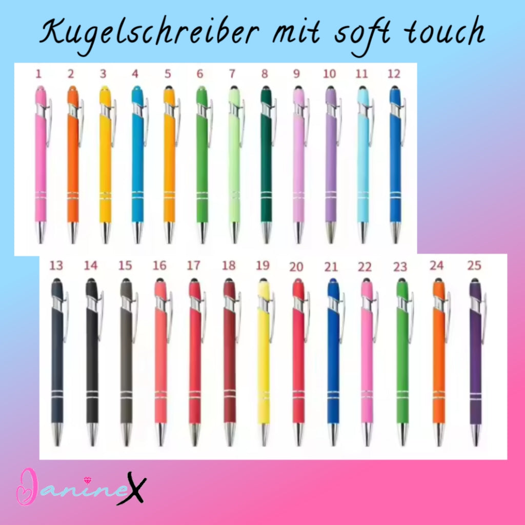 Kugelschreiber in verschiedenen Farben mit Logo JanineX - silberfarbene Elemente