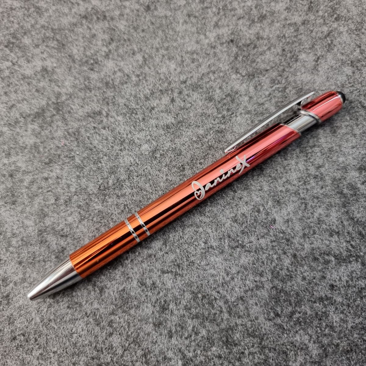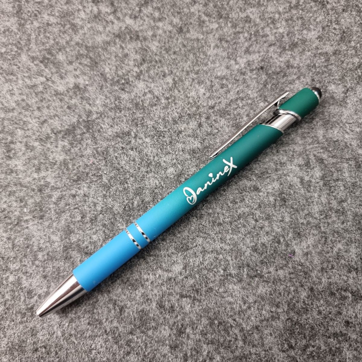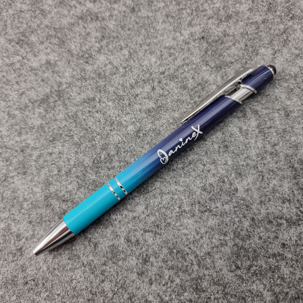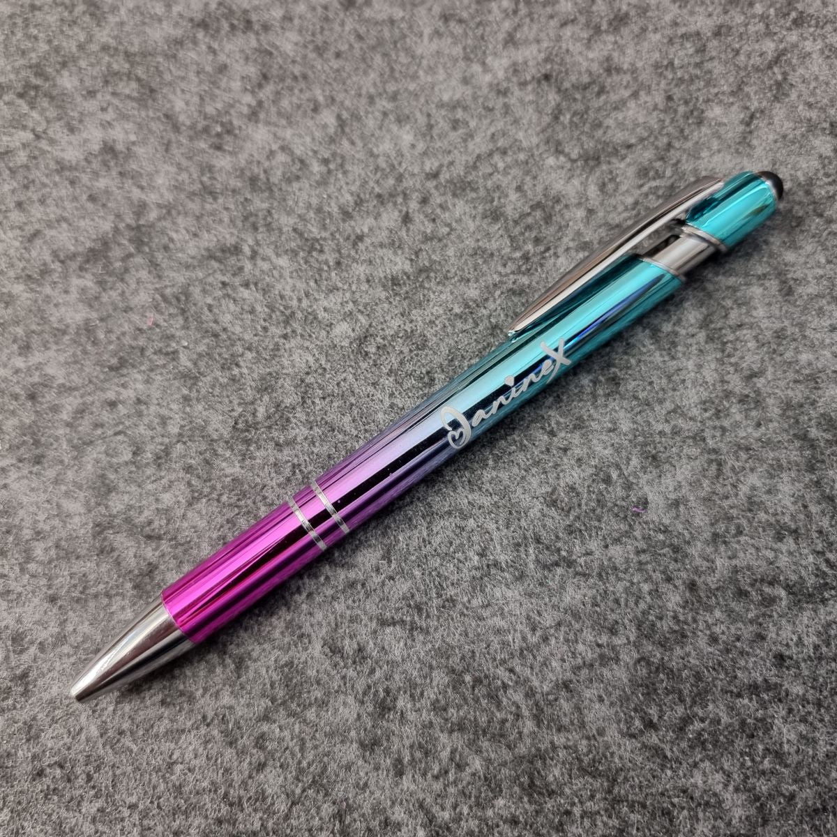 Kugelschreiber mit Verlaufsfarbe mit Logo JanineX - silberfarbene Elemente