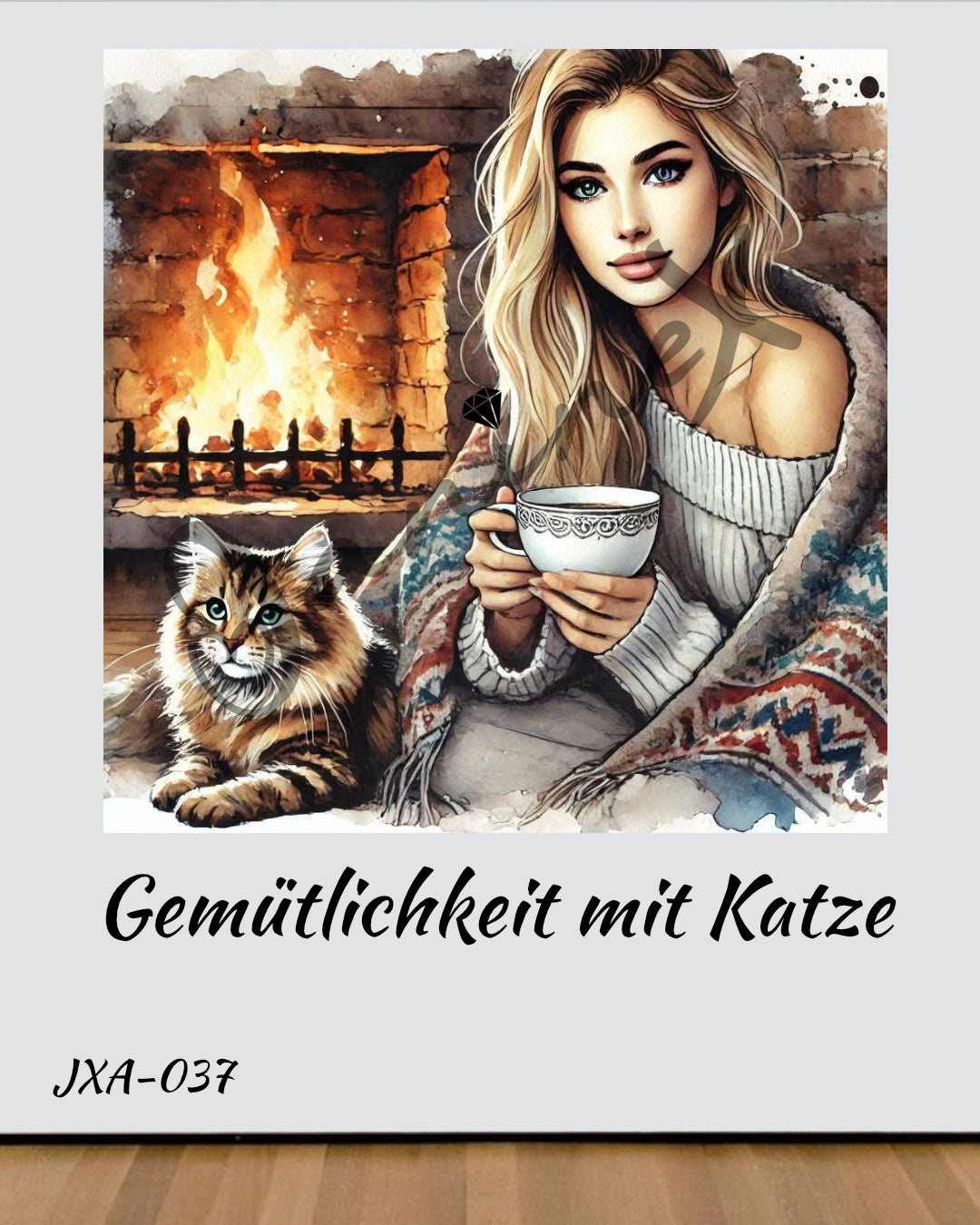 VORBESTELLUNG Diamond Painting ECKIG JXA-037 - Gemütlichkeit mit Katze